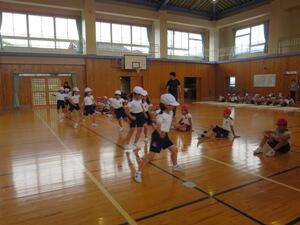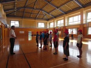 新体力テスト2日目でした。全校児童が体育館で、反復横とび、