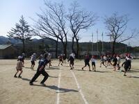 5年生が、長田小学校と交流学習を行いました。体育館に集まって自己紹介をした後、縄跳びをしたり、ペア跳びや長縄跳びをしたりしました。縄跳びが終わって少し休憩をとった後は、運動場で、オーストラリアンフットボールをしました。ALTの先生が、ルールを教えてくれました。ルールに慣れてくると子どもたちの動きもよくなり、半そでで元気に走り回っていました。
