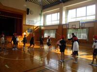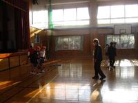 5年生が、長田小学校と交流学習を行いました。体育館に集まって自己紹介をした後、縄跳びをしたり、ペア跳びや長縄跳びをしたりしました。縄跳びが終わって少し休憩をとった後は、運動場で、オーストラリアンフットボールをしました。ALTの先生が、ルールを教えてくれました。ルールに慣れてくると子どもたちの動きもよくなり、半そでで元気に走り回っていました。