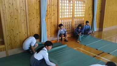 昨年までは、PTAS総会の準備のシート敷きなどは教員で行っていたのですが、本年度は6年生にさせました。