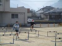 1時間目には、5年生が、体育で、ハードル走の練習をしていました。