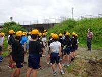 今日は、朝から霧が濃かったのですが、子どもたちが登校してくる頃には、霧も晴れて夏らしい青空となりました。学校では、夏に負けない元気な体をつくるため、1年生から6年生までの全部の学年で水泳がありました。2年生の水泳では、様々な水に親しむ活動が行われ、水を掛け合ったり、頭まで水に入ったりしながら、気持ちよさそうにしていました。