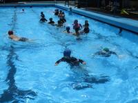 今日は、天気にも恵まれ、多くの学年で水泳の授業がありました。5・6年生の水泳では、けのびやバタ足の練習のほかに、全員で同じ方向に泳いで流れるプールをつくっていました。