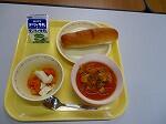 本日の給食は、米粉パン、牛乳、ボルシチ、フルーツポンチ、でした。