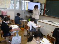 今日は、天気がよく、昼休みには、運動場で鬼遊びや縄跳びをしている児童がたくさんいました。5年生教室では、算数「多角形」の授業でコンパスを使って多角形を描く練習をしていました。3年生教室では、国語「ありの行列」の授業で、電子黒板を使って教科書の読み取りをしていました。