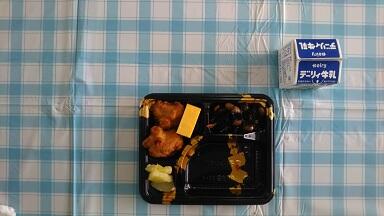 写真ではちょっとわかりにくいですが右下のくぼみの所に持参した「ごはん」が入って弁当の完成です。