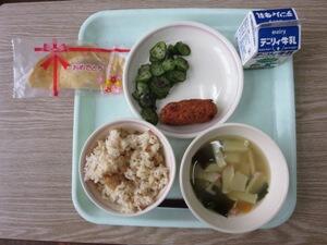 プの豪華メニューでした。1年生は、おいしそうによくかんで食べてい