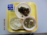 本日、手違いで写真はありませんが、給食は、ごはん、牛乳、かきたま汁、いわしのうめみそに、野菜の塩こんぶあえ、でした。