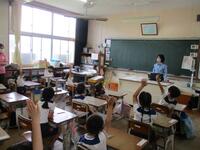 運動会や新体力テストも終わって、各学級の国語や算数の時間には、落ち着いて学習に取り組む子どもたちの様子が見られます。2年生の国語「スイミー」の学習では、海のすばらしい生き物に出会ったときの出来事や様子を読み取ったり、6年生の算数では、「少数÷分数」や「分数÷少数」のわり算を、考えを出し合いながら解いたりしていました。