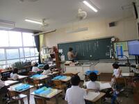 今日は、朝から晴れて過ごしやすい日になりました。運動場では、6年生が、新体力テストのソフトボール投げの練習や測定を行いました。また、3時間目には、三股中学校から栄養指導の先生が来られて、3年生に食育の指導をしてくださいました。