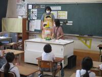 7月7日は、御年神社の六月灯があります。6年生は、この六月灯に向けて、大灯籠をつくりました。写真の大灯籠に吹き流しの飾りを付けて完成です。6年生の力を合わせた大灯籠が六月灯でお披露目されるのが楽しみです。また、今日は、中学校の先生が来られて、2年1組と2年2組に食育の指導をしてくださいました。子どもたちは、食べたものが、その後にどうなるのかを、興味深く聞いたり、質問したりしていました。