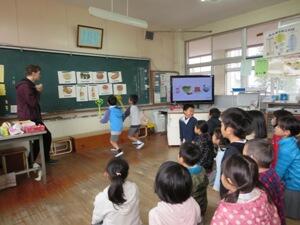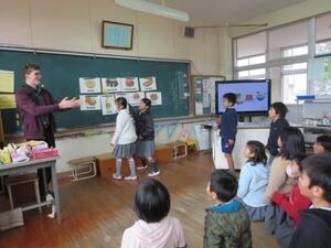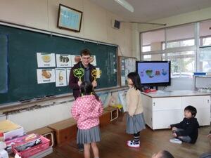 2年生の英語活動がありました。題材はFoodでした。フラッシュカードで単語を確かめました。英語の歌を歌いながら、覚えました。ピザやラザニア、ホットドッグなどは言い方に気をつけていて、良かったです。 peanuts and jellyにはYummy、 broccoli and icecreamには Yucky、とてもうれしそうに歌っていました。2つめはタッチゲームでした。2つのチームに分かれて、1人ずつ対戦しました。「がんばれ」「よく見てね」という声援や「すごいね」「はやかったね」というほめる声かけができていて良かったです。