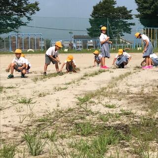 全校朝会後には運動場の除草作業を行いました。暑い中、子どもたちが頑張ったお陰で、運動場も綺麗になりました。27日(日)はPTA奉仕作業です。さらに綺麗になることを楽しみにしています。