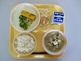 本日の給食は、ごはん、牛乳、さつまじる、ちぐさやき、かぶときゅうりのあえもの、ねったぼ、でした。