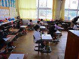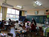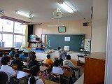本日は、朝から曇り空、傘をもって登校してきた子も数人いました。しかし、2時間目ぐらいからはすっきりした青空がひろがりました。写真は3年生の社会科の様子と、1年生の体育の様子です。