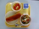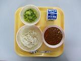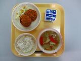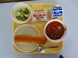 本日の給食は、むぎごはん、牛乳、キーマカレー、グリーンサラダ、でした。さすがに、カレーはみんなに人気があり、いつもより、食べるのに、あまり時間はかかりませんでした。
