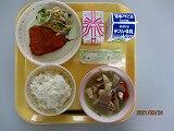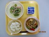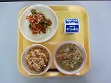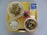 本日の給食は、ごはん、牛乳、すまい汁、ちきんなんばん、もやしのレモンあえ、でした。
