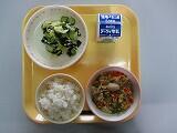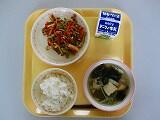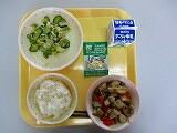 本日の給食は、ごはん、牛乳、わかめスープ、チンジャオロース、でした。