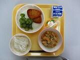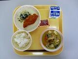 本日の給食は、ごはん、牛乳、かきたまじる、サバホイル焼き、きゅうりとはくさいのそえもの、でした。