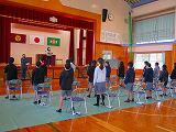 今日は、1年をふりかえる修了式の日、全員、標準服を着て、式にのぞみました。ソーシャルディスタンスを保ちながら、体育館での式で、修了書を代表児童に手渡しました。