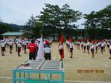 土・日は、かなり雨が降りましたが、本日は時々、晴れ間も見えて気温もぐっとあがりました。27日の運動会に向けて、各学年頑張っています。写真は中学年の団技の練習になります。
