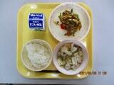 本日の給食は、ごはん、牛乳、豚汁、ひじきのごもくに、でした。