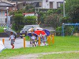 本日は、久しぶりに朝から雨でした。今週の午前中夏空からの夕方のすごい雷雨ではなく、朝からの雨で、子ども達も朝から傘をさしての登校となりました。児童数135名ではありますが、雨が降ると児童玄関は結構、こみあいます。
