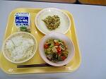 本日の給食は、ごはん、牛乳、ごもくまめ、ほうれん草とツナのあえもの、でした。