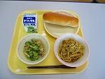 本日の給食は、減量コッペパン、牛乳、やきそば、しゃきしゃきサラダ、でした。