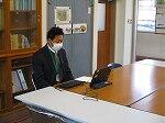 今日から2月、朝の時間では全校朝会を行いました。校長の話、生徒指導の話、保健面からの話をしましたが、新型コロナウイルス感染症拡大防止の観点から、校長室からパソコンを使い、それぞれの教室のテレビ画面に映す方法で実施になりました。