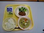 本日の給食は、ごはん、牛乳、豚汁、こんさいハンバーグ、ゆでブロッコリー、でした。