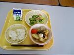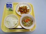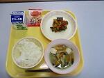 本日の給食は、ごはん、牛乳、マーボー豆腐、いとかまのこ野菜のあえもの、でした。