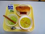 本日の給食は、ホットドッグ、牛乳、かぼちゃポタージュ、でした。