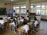 今日は、久しぶりに朝から晴れて、運動場で体育をしている学級がいくつもありました。また、今年度はじめて、ALTの先生が来校され、ネイティブイングリッシュを聞いたり、ゲームをしたりしながら、外国語活動を行いました。写真は、4年生の体育と3年生の外国語活動の授業です。今日の給食は、ごはん、牛乳、豚汁、厚焼きタマゴ、きゅうりとニンジンのそえものでした。