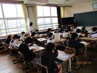 今日は、入学式がありました。新入生氏名点呼では、新1年生が、しっかりと返事をしていました。写真は、入学式、5年生の国語の授業です。今日の給食は、ごはん、牛乳、うまに、マロニーの酢のものでした。