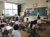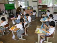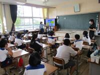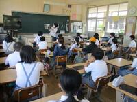 今日は、朝から晴れて過ごしやすい日になりました。運動場では、6年生が、新体力テストのソフトボール投げの練習や測定を行いました。また、3時間目には、三股中学校から栄養指導の先生が来られて、3年生に食育の指導をしてくださいました。