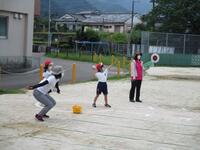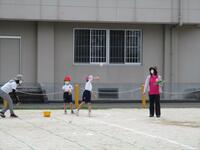 今週は、晴れの日が続いているので、運動場では、新体力テストのソフトボール投げが、毎日のようにどこかの学年で行われています。今日は、1年生のソフトボール投げがあり、前時の体育の時間に練習した成果をだそうと、がんばっていました。