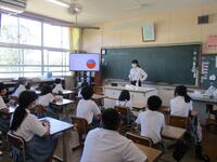 7月7日は、御年神社の六月灯があります。6年生は、この六月灯に向けて、大灯籠をつくりました。写真の大灯籠に吹き流しの飾りを付けて完成です。6年生の力を合わせた大灯籠が六月灯でお披露目されるのが楽しみです。また、今日は、中学校の先生が来られて、2年1組と2年2組に食育の指導をしてくださいました。子どもたちは、食べたものが、その後にどうなるのかを、興味深く聞いたり、質問したりしていました。