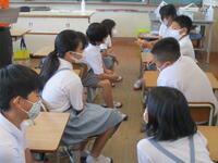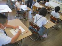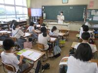 朝から青空が広がり、今日も日中は暑くなりそうです。6年生の教室では、「涼しく過ごすための工夫」について、家庭科の授業で学習をしています。1年生の教室では、空書きで、先生と一緒に書き順を確認しながら、カタカタの練習をしています。7月も中旬に入り、益々エアコンがないと厳しい暑さになってきました。ご家庭でも、エアコン等を上手に使いながら、体調を整えていただき、元気に学校に登校してきてほしいと思います。