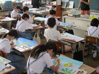 写真は、校庭の様子と、2年生の算数、4年生の図工です。