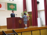 春休みの過ごし方についての先生方からの話の後に、集団登校の班の中からあいさつが特に良かった班や本を多く読んだ児童が表彰されました。