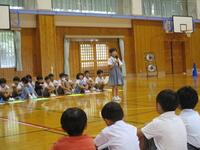 音楽会には、3・4年生が参加します。そのリハーサルとして10月22日の朝の時間に、これまでの練習の成果を全校児童の前で発表しました。響きのある歌声とリズムのそろった合奏でした。