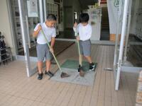 全校児童130人が出入りする児童玄関は、砂などがすぐにたまります。清掃の時間だけでは、なかなかきれいになりません。そこで、美化委員会が出動です。担当の日には、一生懸命活動してくれています!