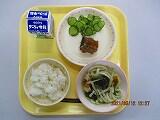 本日の給食は、ごはん、牛乳、カラフル牛丼、ごぼうサラダ、でした。