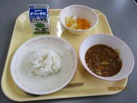 今日は、児童集会がありました。児童集会では、登下校の仕方や班と集合時間の確認等を行いました。写真は、児童集会、1年生のオリエンテーション、3年生の理科の授業です。今日の給食は、むぎごはん、牛乳、ポークカレー、フルーツポンチでした。