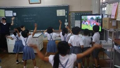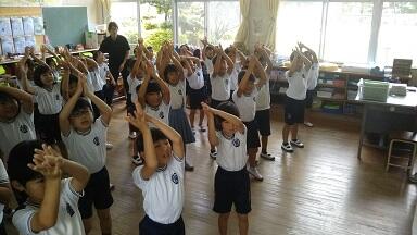 1・2年生が運動会のダンスの練習をしていました。
