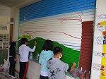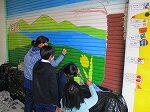 本校には、こども郵便局があり、シャッターがあるのですが、廊下が暗いこともあり、シャッターをしめうとどうしても暗くなっていて、気になっていたのですが、今、絵を書いている子ども達がいます。まだ、途中の様子ですが、仕上がりが楽しみです。