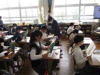 今日は、午後から町の秋季研修会が行われるので、特別校時の4時間授業です。家庭科室では、5年生が、パッチワークを縫うことを通して、ミシンの使い方を学んでいました。また、6年生は、国語の学習で、日本の文化のよさをパンフレットにまとめる学習を行っていました。