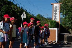 ・集団登校・・登校班は3班です。バス通学の子もいます。学校前にバス停