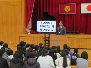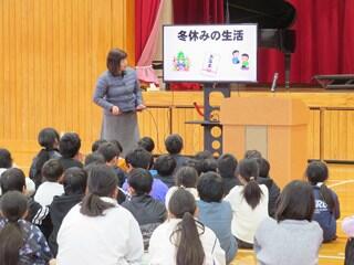 式の後に、生徒指導担当と保健担当から、冬休みの安全な過ごし方について話をしました。3学期の始業式に、みんな元気に登校してくれることを願っています。